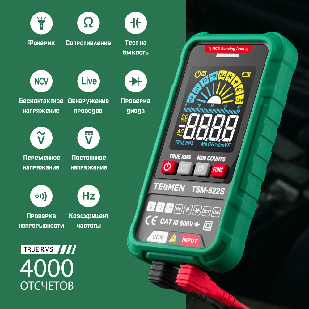 Мультиметр цифровой автоматический TESMEN TSM-522S тестер с звуковой прозвонкой информация: