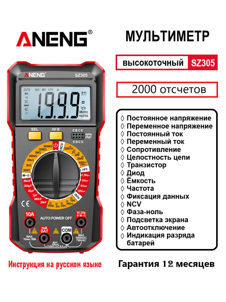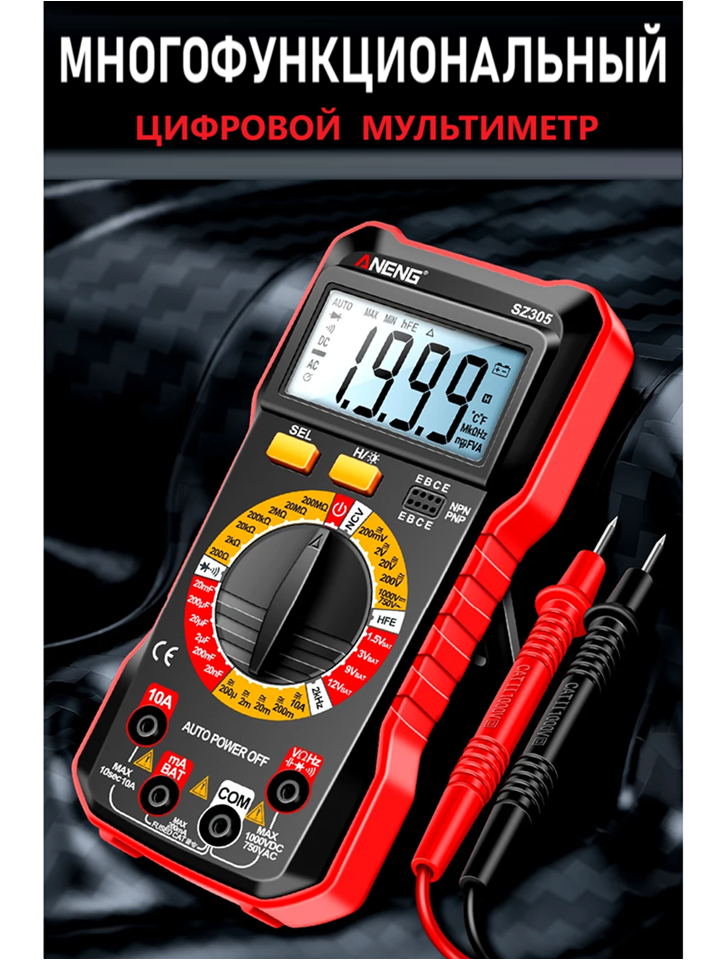 Мультиметр цифровой многофункциональный ANENG SZ305 Смарт тестер большой профессиональный (красный) информация: