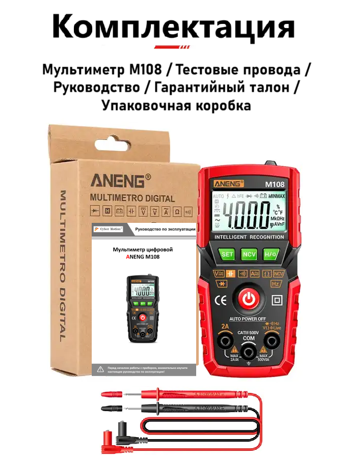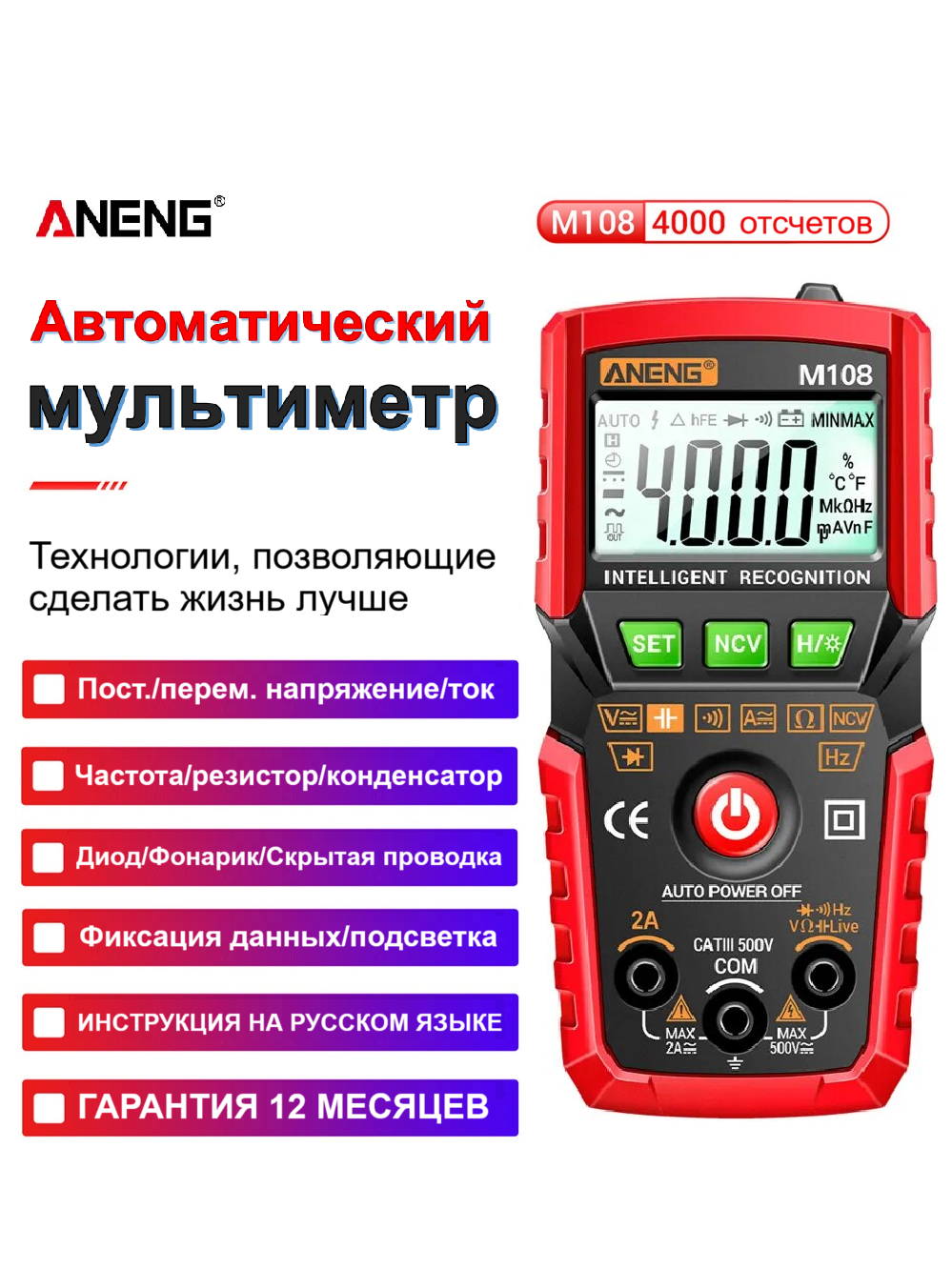 Мультиметр цифровой многофункциональный ANENG M108 Смарт тестер профессиональный (красный) информация: