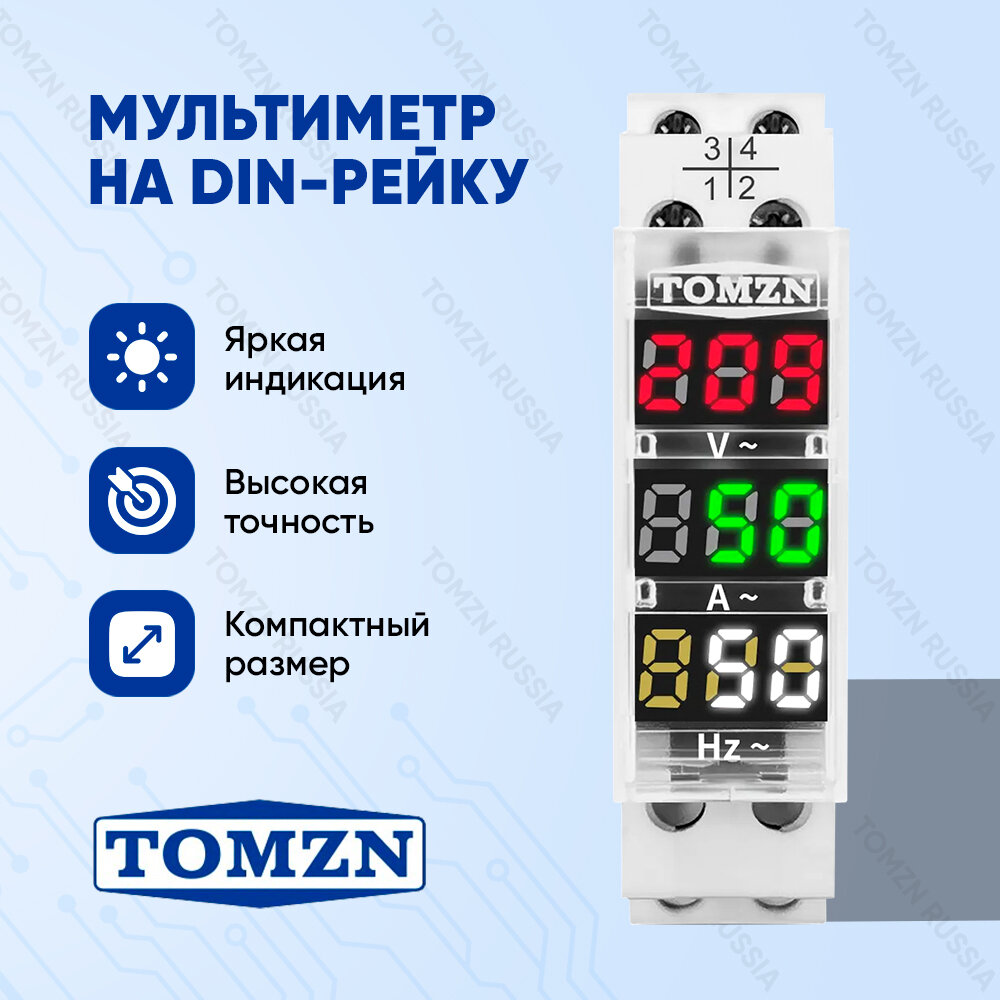 Цифровой вольтметр и амперметр TOMZN TO-VAH, для однофазной сети, 230В, 50-60Гц информация: