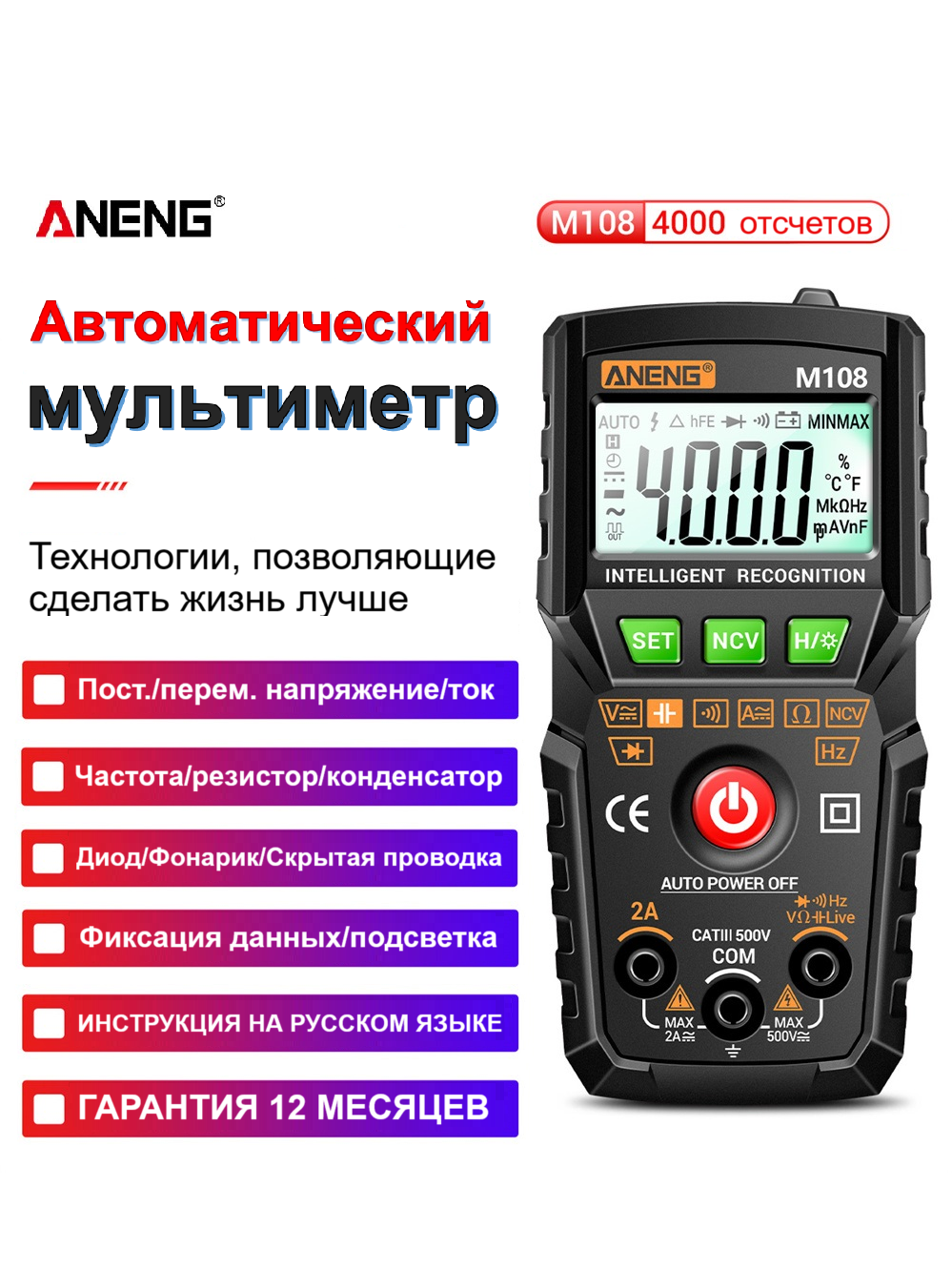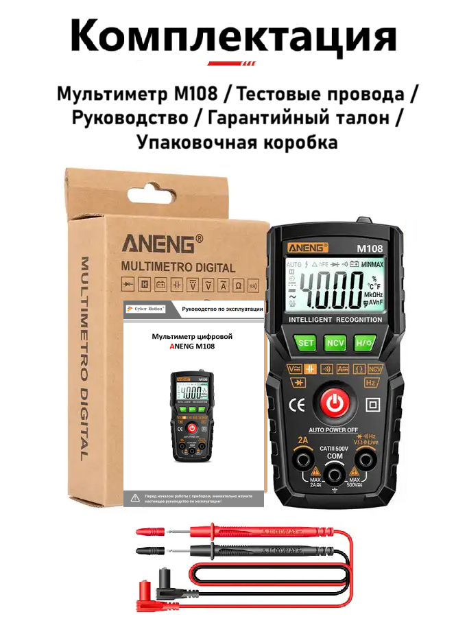 Мультиметр цифровой многофункциональный ANENG M108 Смарт тестер профессиональный (черный) информация: