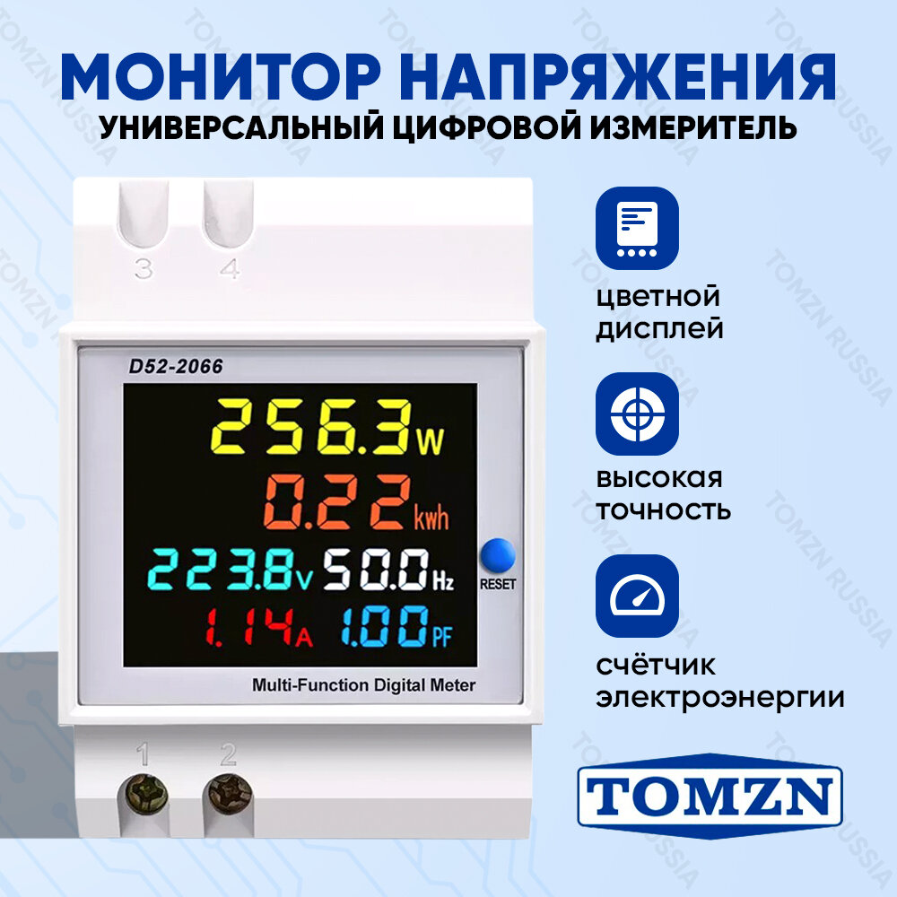 Мультиметр на DIN рейку TOMZN D52-2066 40-300В 100А / Цифровой амперметр, вольтметр, ваттметр с внешним датчиком информация: