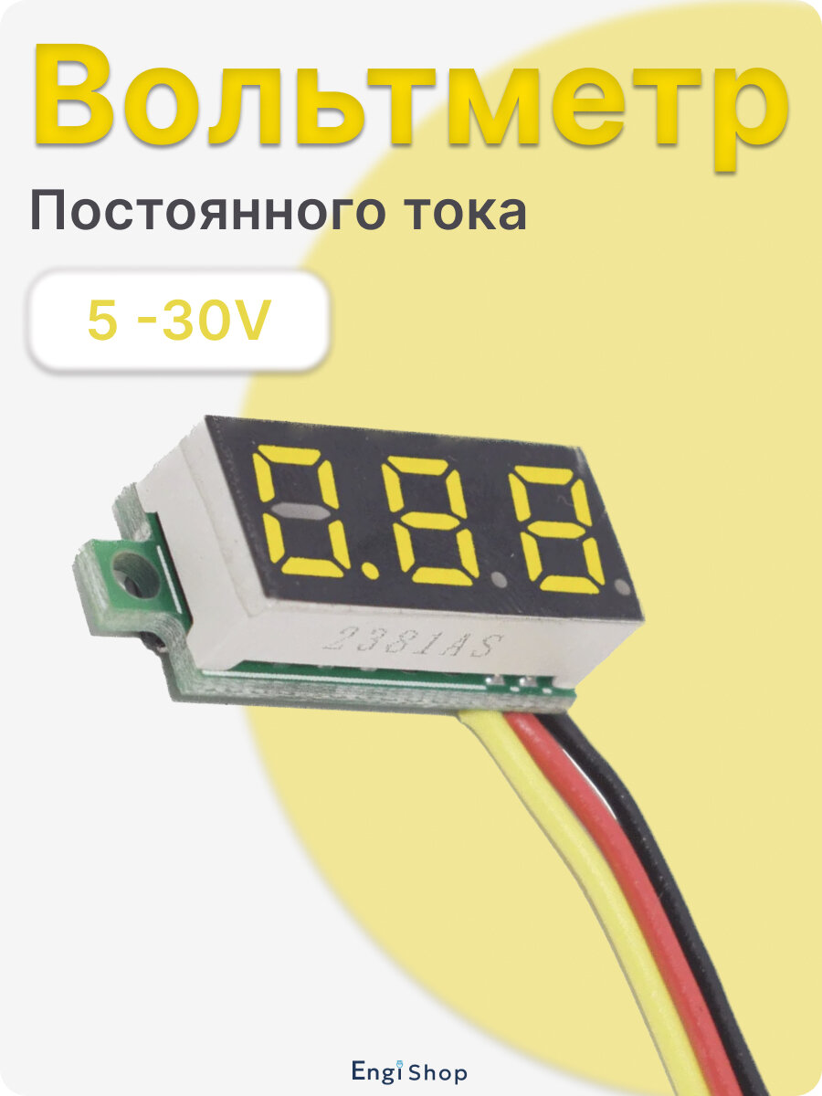Вольтметр автомобильный цифровой врезной тестер - желтый информация: