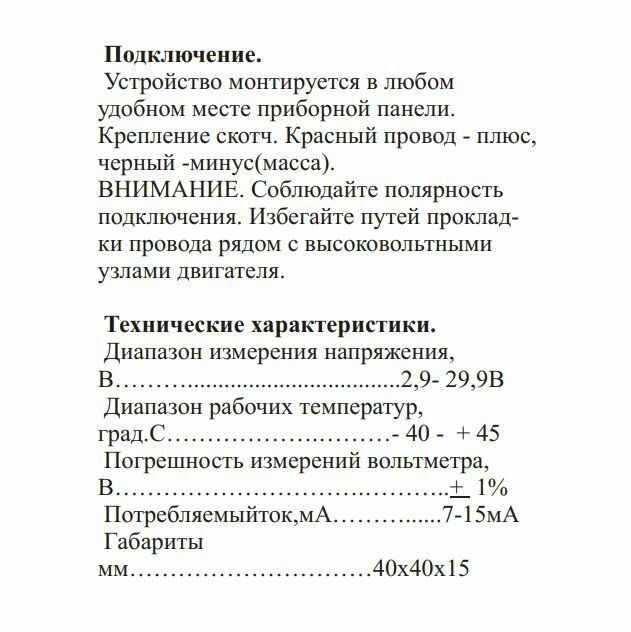 Вольтметр с проводом 12/24Вольт (40х40х15мм) Круглый на скотче. Сделано в России (16709) информация: