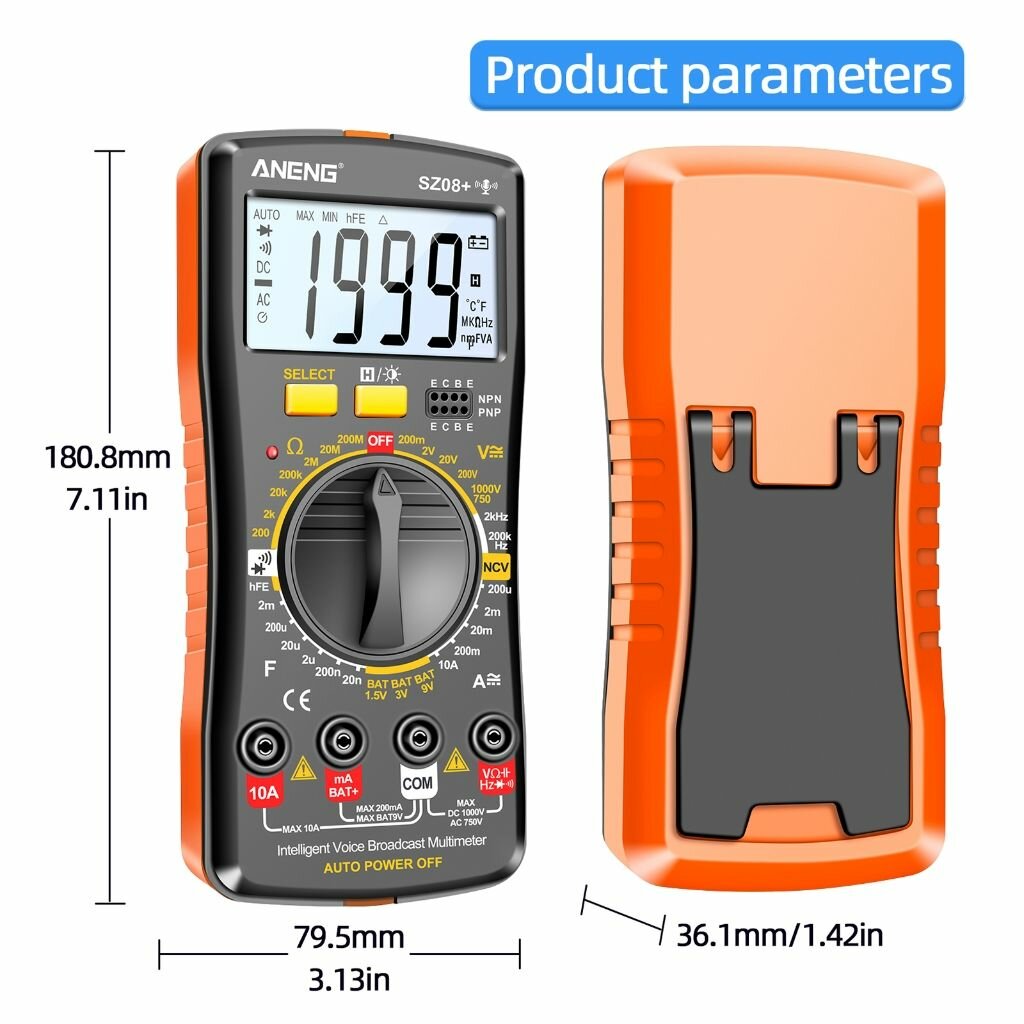 Отзывы на Мультиметр, SZ08+ счетчик с голосовым оповещением и раздельным хранением цифрового мультиметра - красный, 1 шт