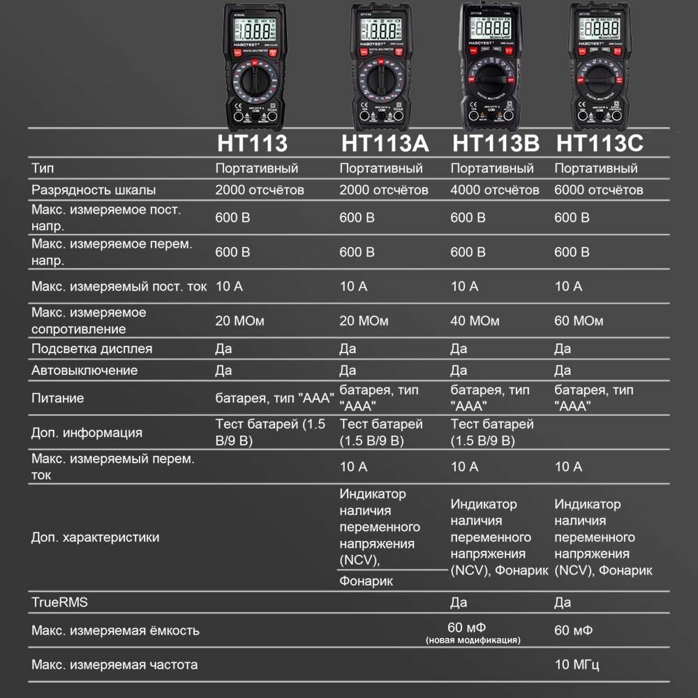 Мультиметр Habotest HT113B (True RMS) информация: