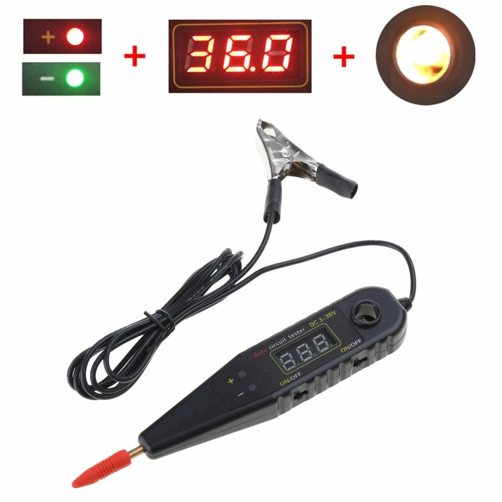 10 цен на Тестер автомобильных цепей, диагностический инструмент с вольтметром, набор зондов, цифровой детектор напряжения постоянного тока 3-36 В
