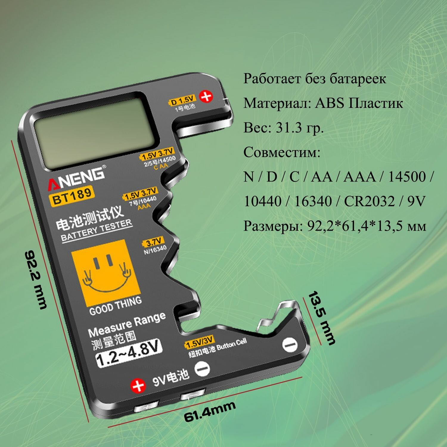 Отзывы на Универсальный цифровой тестер батареек аккумуляторов АКБ, черный