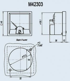Вольтметр М42303, (0-300В), стрелочный, класс точности 2.5, 40х40мм, 1шт информация: