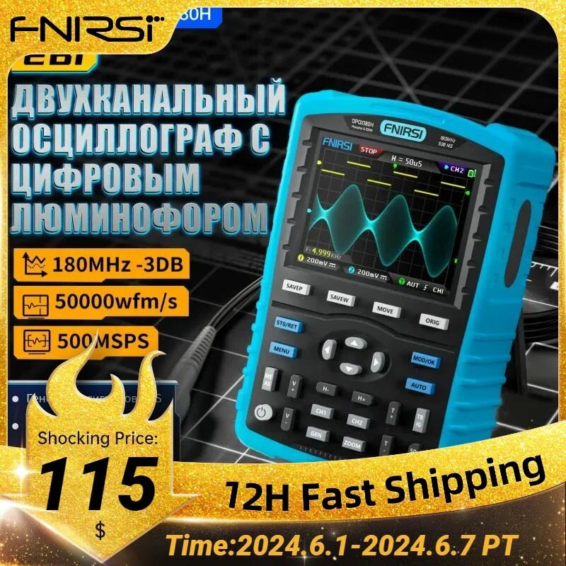 Отзывы на Осциллограф FNIRSI DPOX180H, портативный, цифровой + генератор сигналов, 2 канала, полоса пропускания 180 МГц, синий