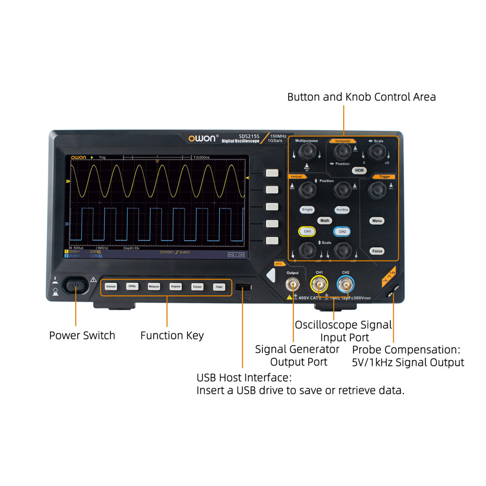 10 цен на ОWON SDS210 Цифровой осциллоскоп хранения, 2CH независимый образец 1GS/s, пропускная способность 100MHz, запись 20M