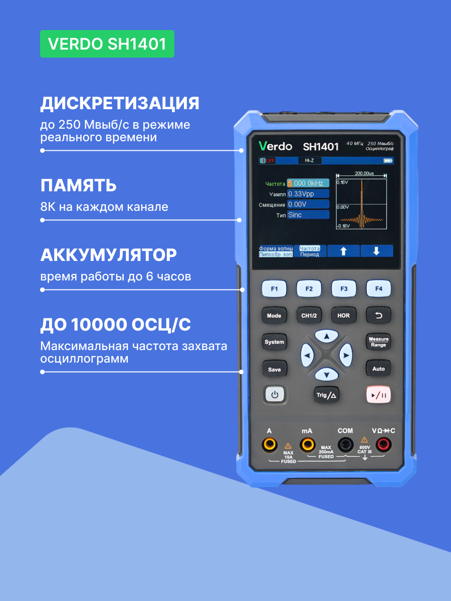 Отзывы на VERDO SH1401 Осциллограф-мультиметр 40МГц, 2 канала с поверкой Госреестр СИ
