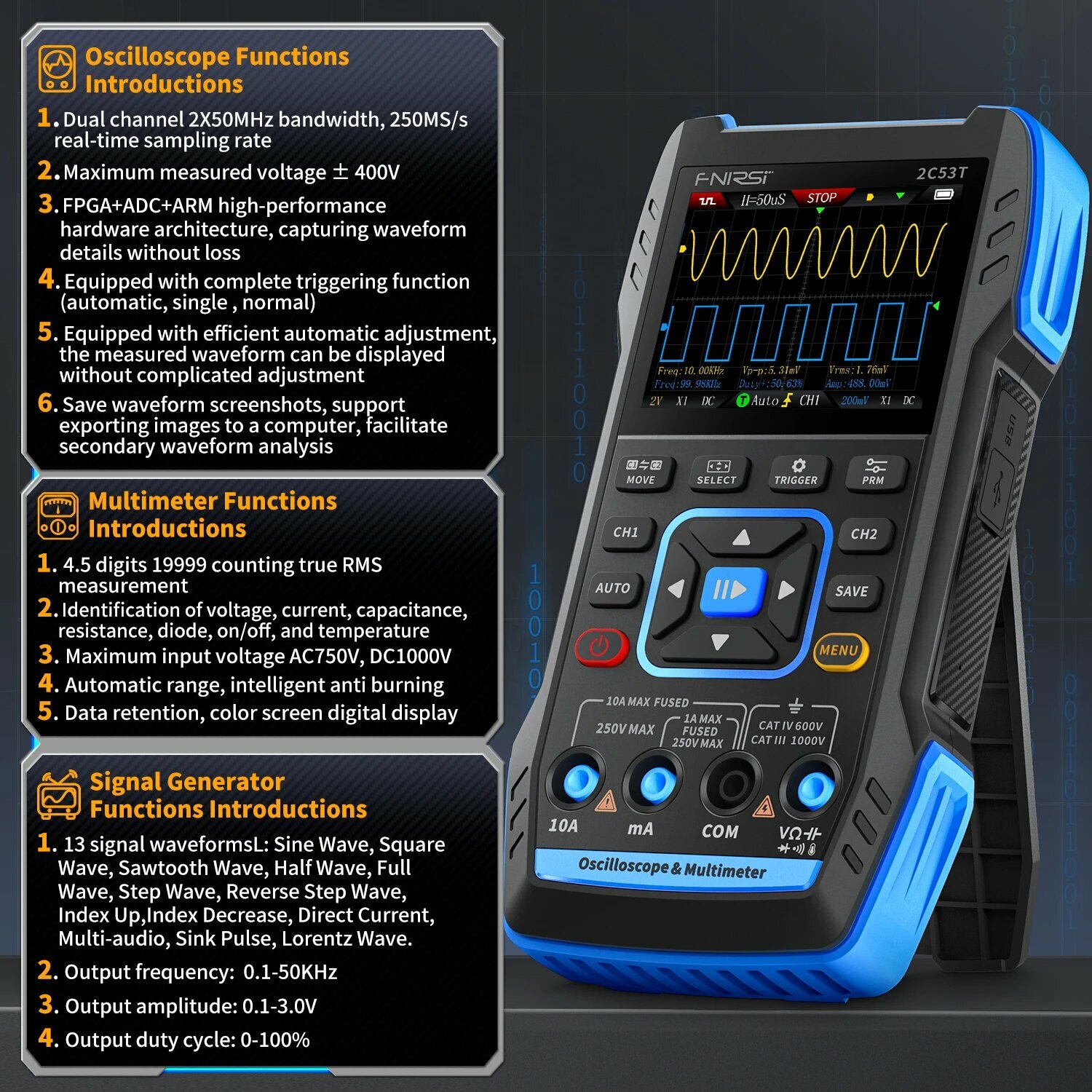 Цифровой осциллограф 3 в 1, портативный мультиметр, генератор сигналов со встроенным аккумулятором