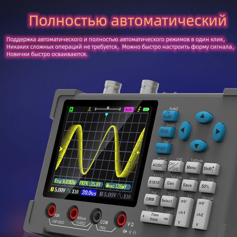 Цифровой осциллограф 3 в 1, портативный мультиметр, генератор сигналов со встроенным аккумулятором