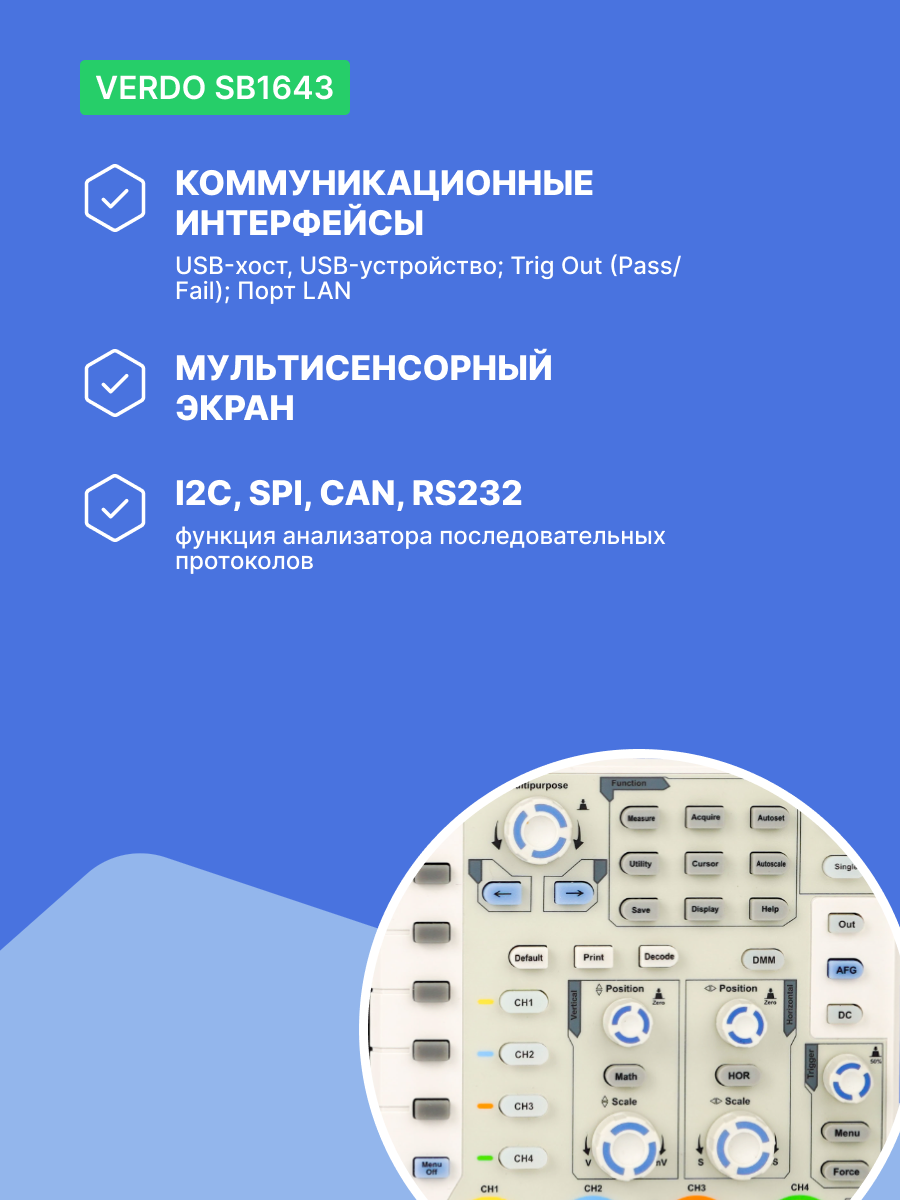 VERDO SB1643 Осциллограф цифровой 4 канала, 100 МГц, 1 Гвыб/с с поверкой Госреестр СИ информация: