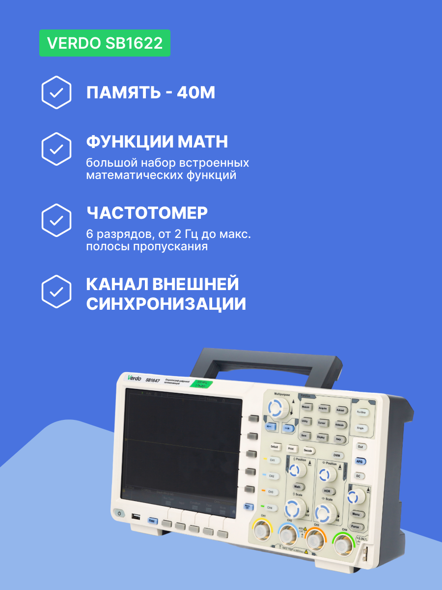 10 цен на VERDO SB1622 Осциллограф цифровой настольный 2 канала, 100МГц, 1Гвыб/с Госреестр СИ