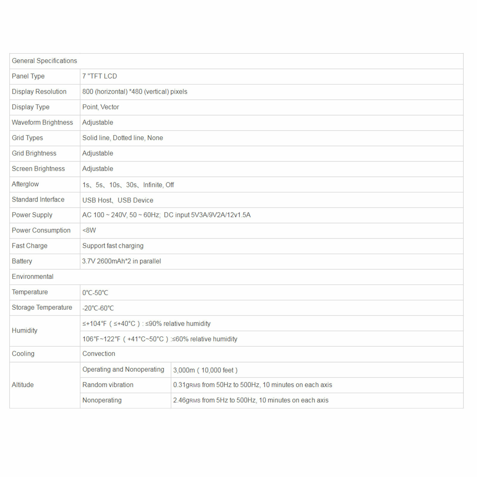10 цен на Портативный осциллограф Hantek TO1112, двуканальный 110МГц, 250МСа/с, с 7-дюймовым TFT LCD экраном и чехлом