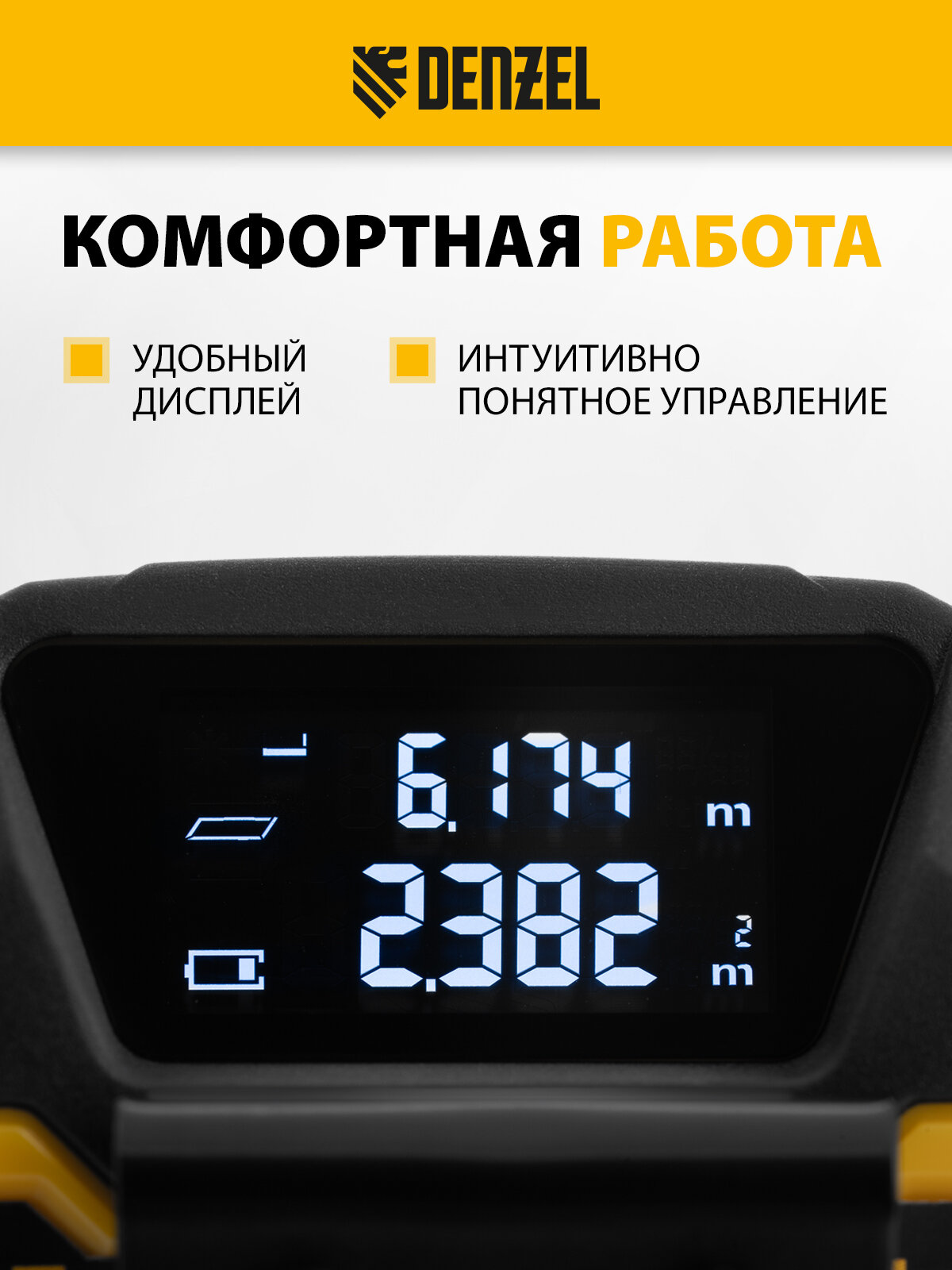 Отзывы на Лазерный дальномер с рулеткой Denzel, LT-40, 5м x 19 мм, дальномер 40м, автомат. фиксация, 38020