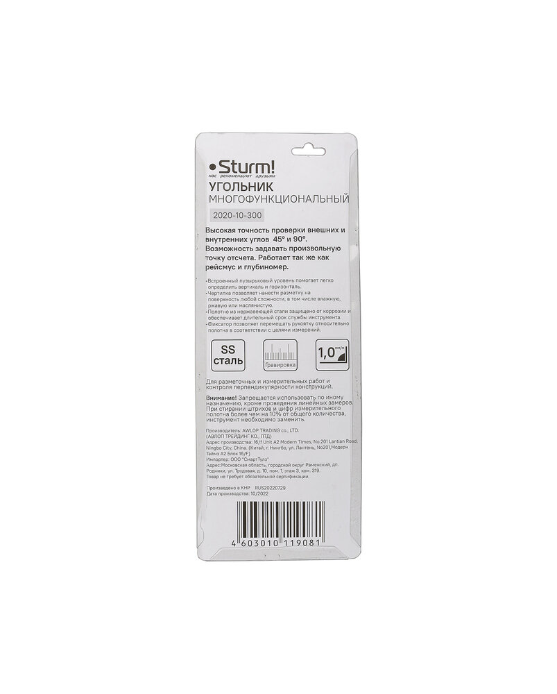 Отзывы на Угольник многофункциональный, 300 мм, уровень, чертилка, Sturm!