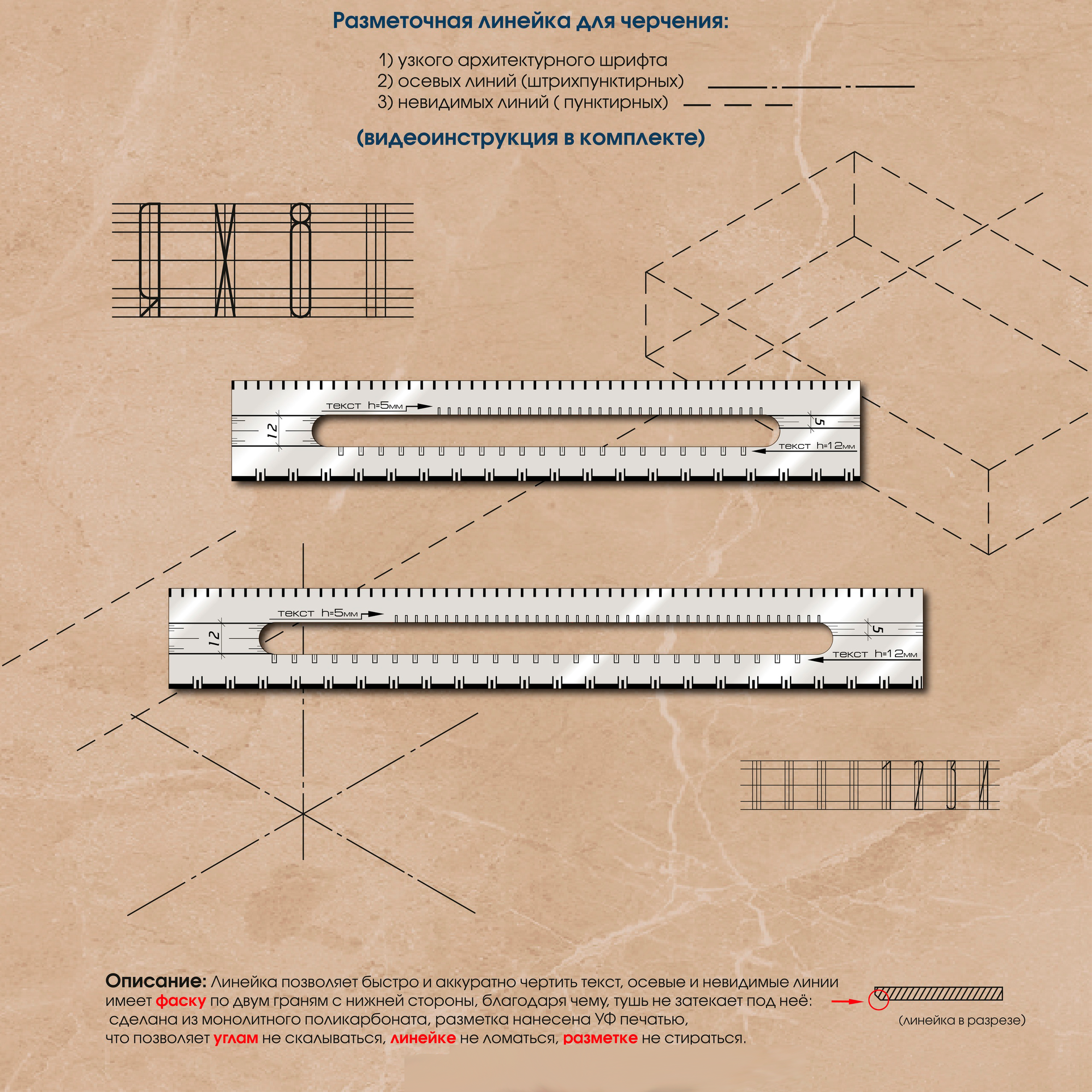 Архитектурная линейка PROLine для пунктирных и штрих-пунктирных линий 30см информация: