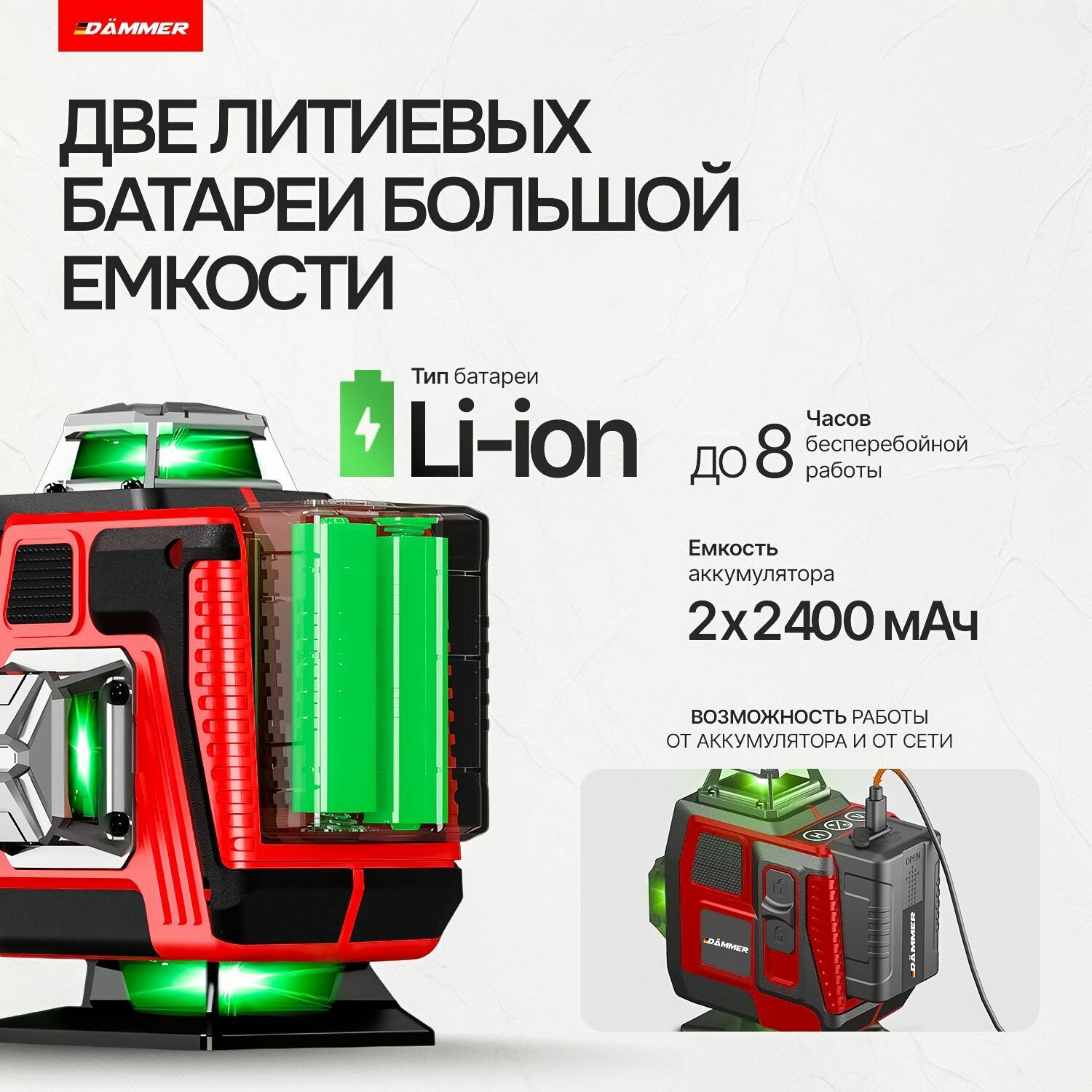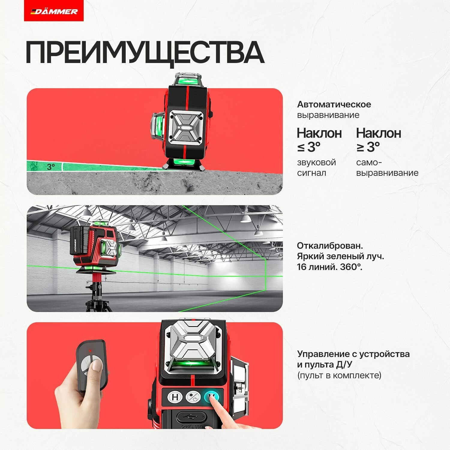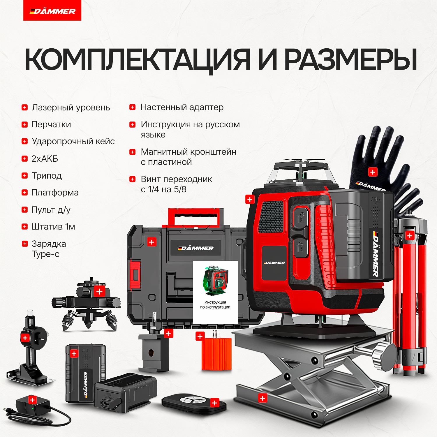 Лазерный уровень 4D со штативом DAMMER, 360 зеленый луч, строительный нивелир информация: