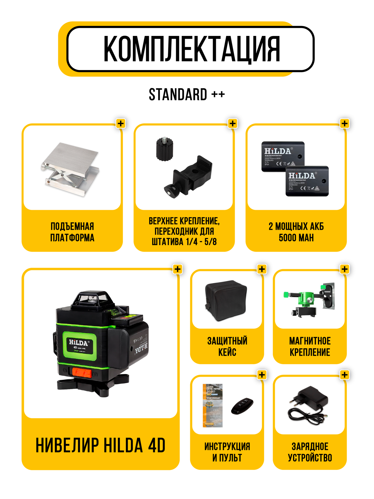 Лазерный уровень 4D/16 линий с Дисплеем зеленый луч 2 аккумулятора st++ информация: