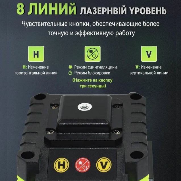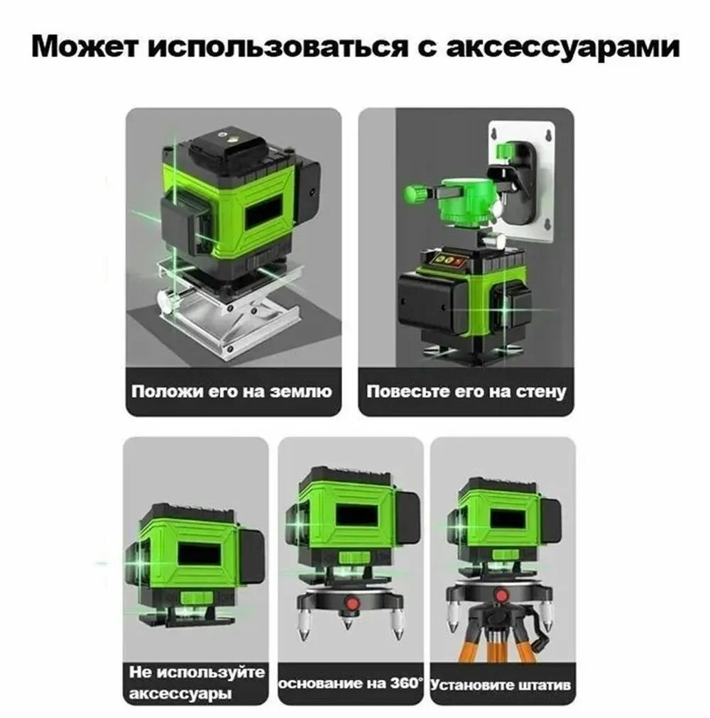 Отзывы на Лазерный уровень зеленый, нивелир , 360 градусов, 8 Линий, 2 аккумулятора , Зарядное устройство*1,