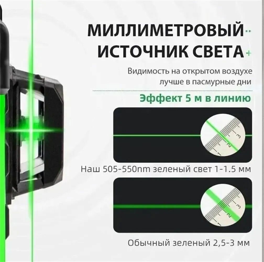 Лазерный уровень зеленый, нивелир , 360 градусов, 8 Линий, 2 аккумулятора , Зарядное устройство*1, информация: