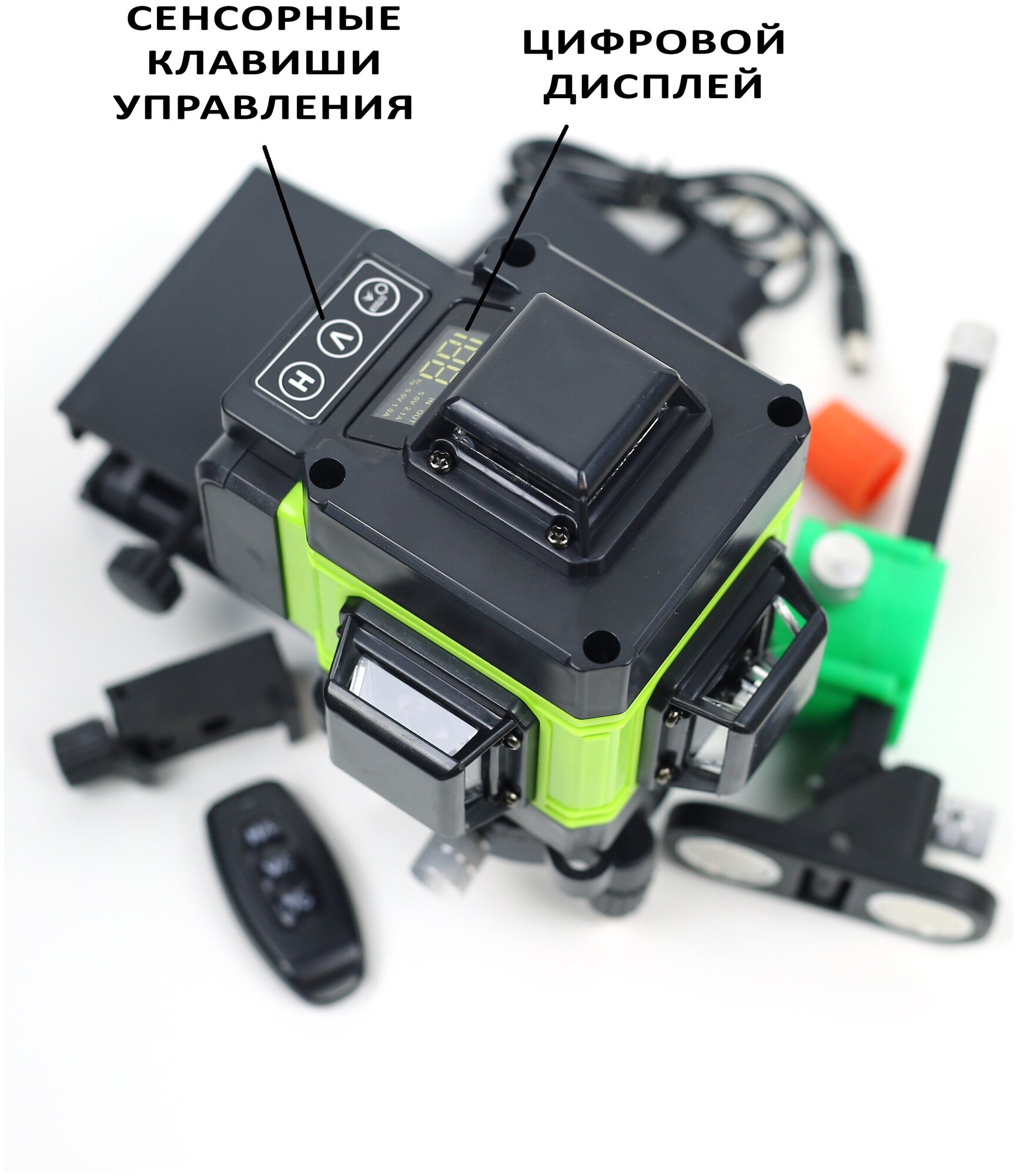 Лазерный уровень 16 лучей, зеленый луч, свечение на 360 градусов, два аккумулятора информация: