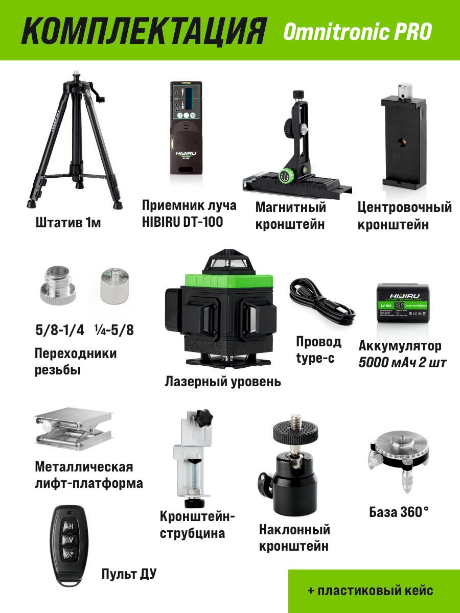 Лазерный уровень нивелир HIBIRU Omnitronic PRO 4D 16 линий 360 градусов со штативом и приемником информация: