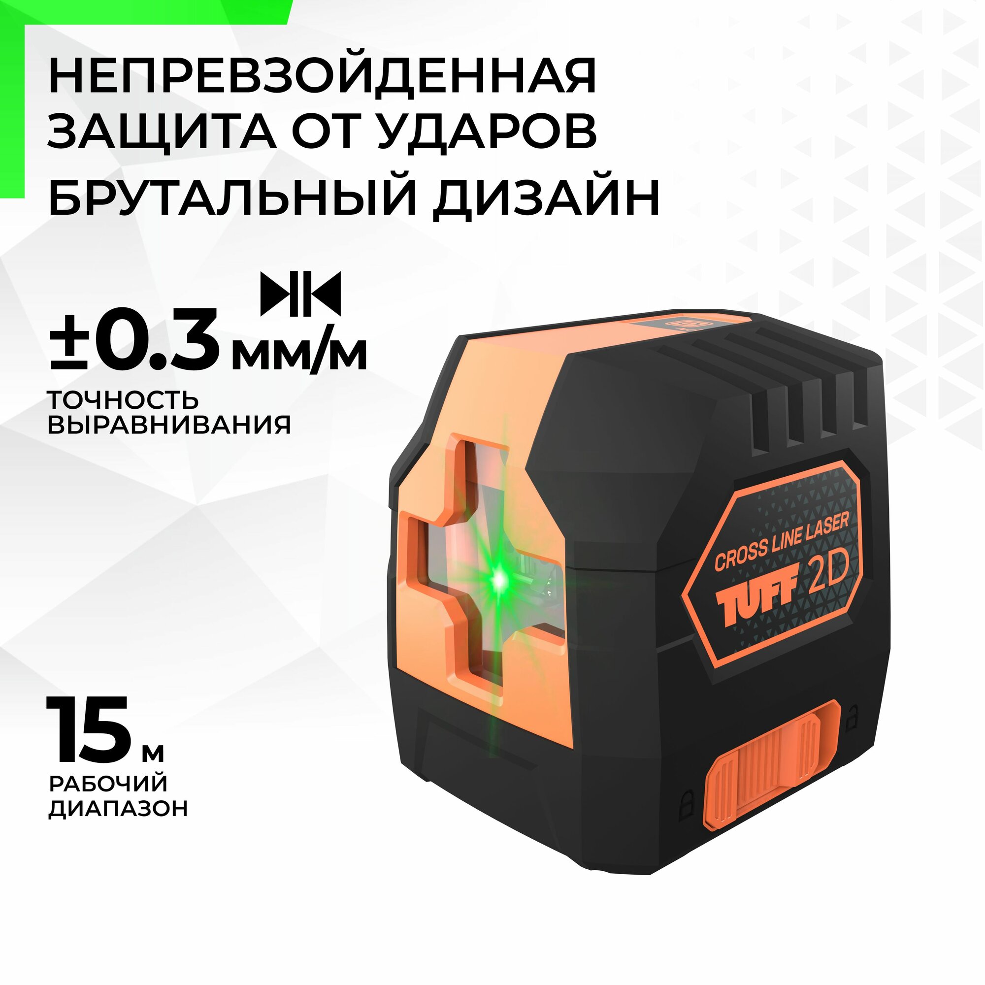 Лазерный уровень TUFF 2D, зеленый луч, строительный инструмент информация: