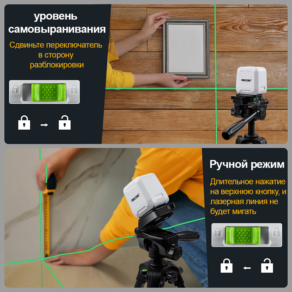 Отзывы на Лазерный уровень/нивелир FIRECORE G20, 2 Линий, Зеленый луч, С батарейками, С 63 см штативом