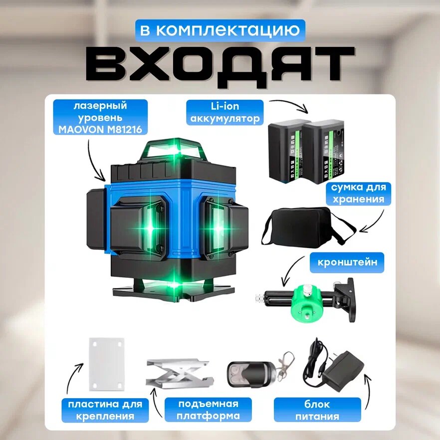 Лазерный нивелир MAOVON (зелёный лазер) 12 лучей информация: