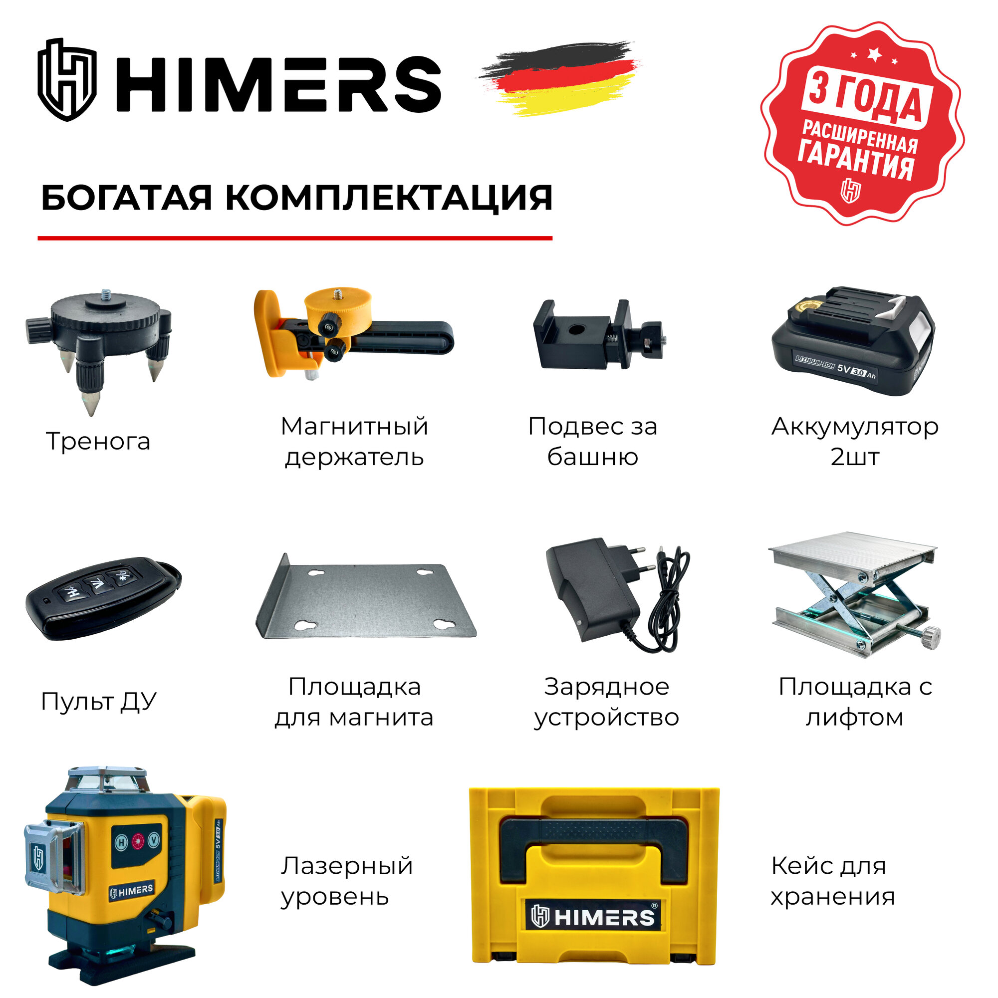 Лазерный уровень (нивелир) HIMERS LZ16Y аккумуляторный 5V, 2 АКБ по 3 А. ч, 16 лучей, 4 башни / Кейс + 11 предметов / 60 метров информация: