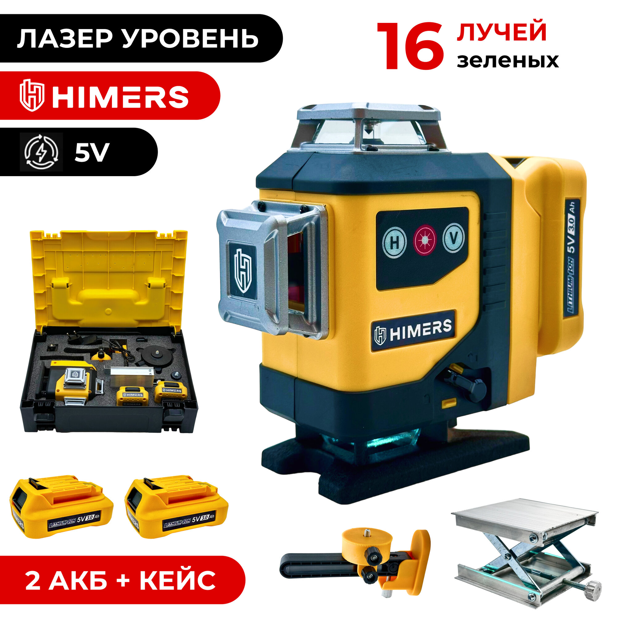 10 цен на Лазерный уровень (нивелир) HIMERS LZ16Y аккумуляторный 5V, 2 АКБ по 3 А. ч, 16 лучей, 4 башни / Кейс + 11 предметов / 60 метров