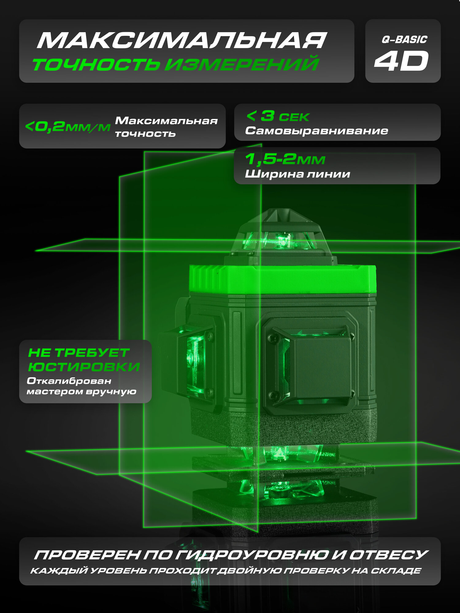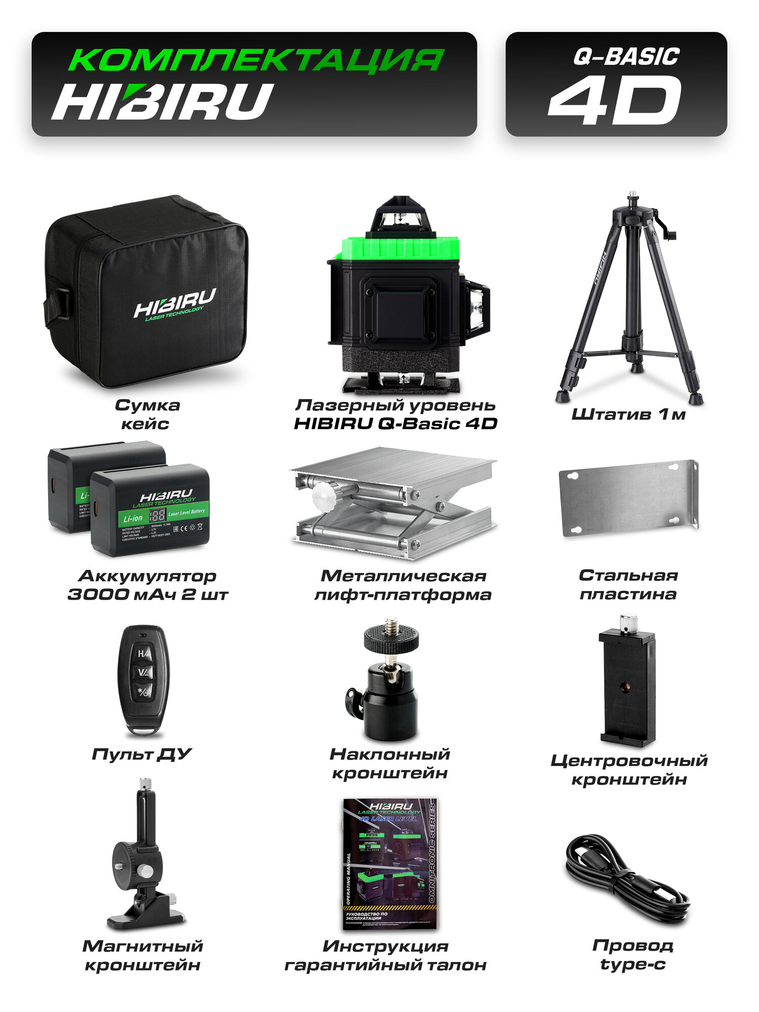 Лазерный уровень HIBIRU Q-Basic 201 4D зеленый луч(нижний и верхний горизонт)+штатив информация: