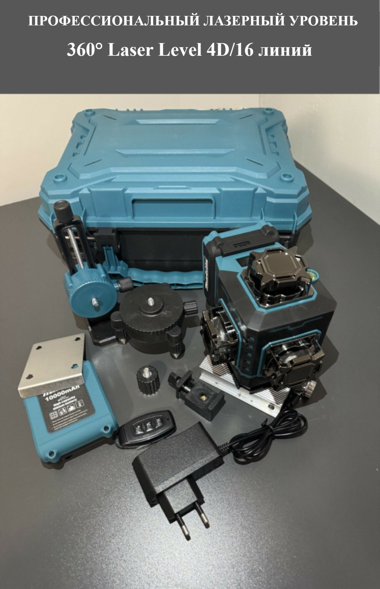 Лазерный нивелир, 16 лучей, 360°, 10 000 мА, зарядник type C информация: