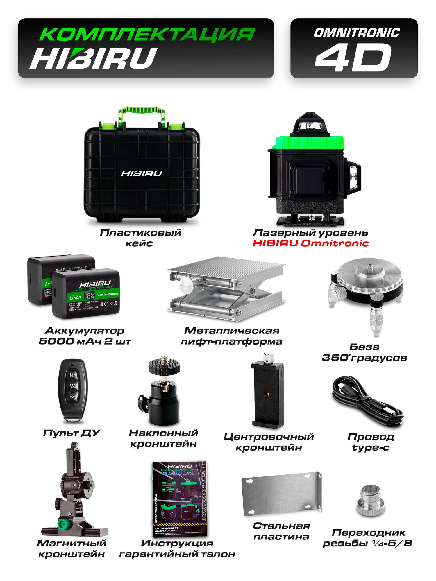 Лазерный уровень 4D HIBIRU Omnitronic 4360 зеленый луч(нижний и верхний горизонт) информация: