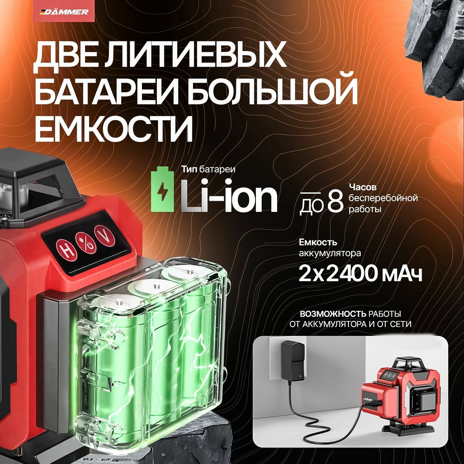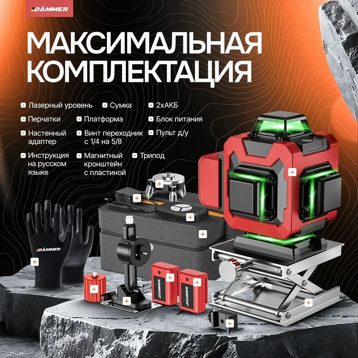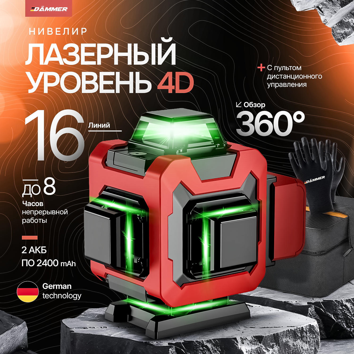 Лазерный уровень DAMMER 4D, 360 зеленый луч, строительный нивелир информация: