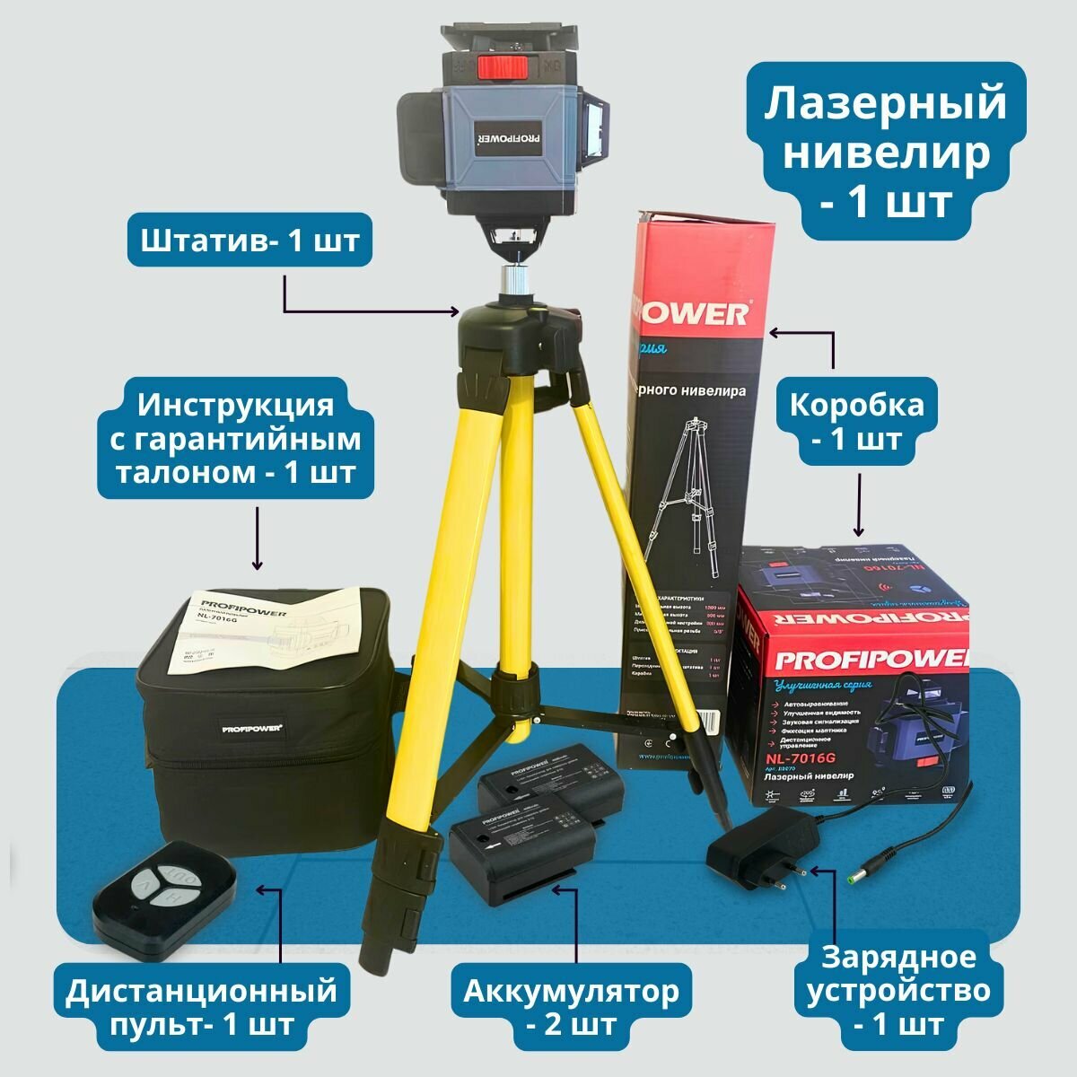 Лазерный уровень строительный PROFIPOWER NL-7016G, 16 лучей, со штативом информация: