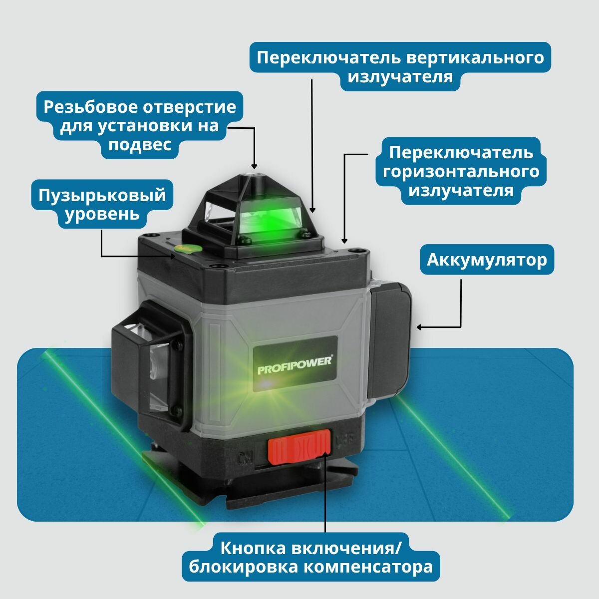 10 цен на Лазерный уровень строительный PROFIPOWER NL-7016G, 16 лучей, со штативом