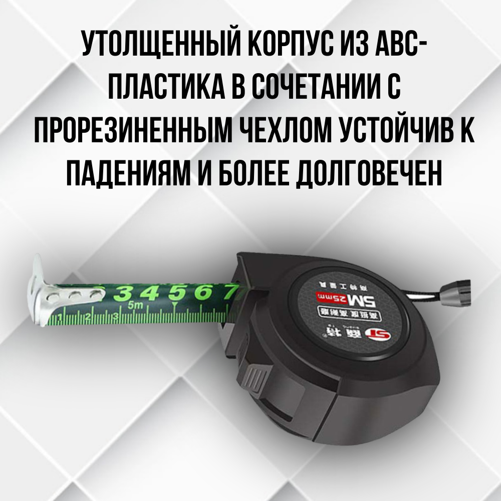 Рулетка измерительная промышленного класса с высококонтрастной изностойкой лентой в ударопрочном корпусе 5 м 25 мм информация: