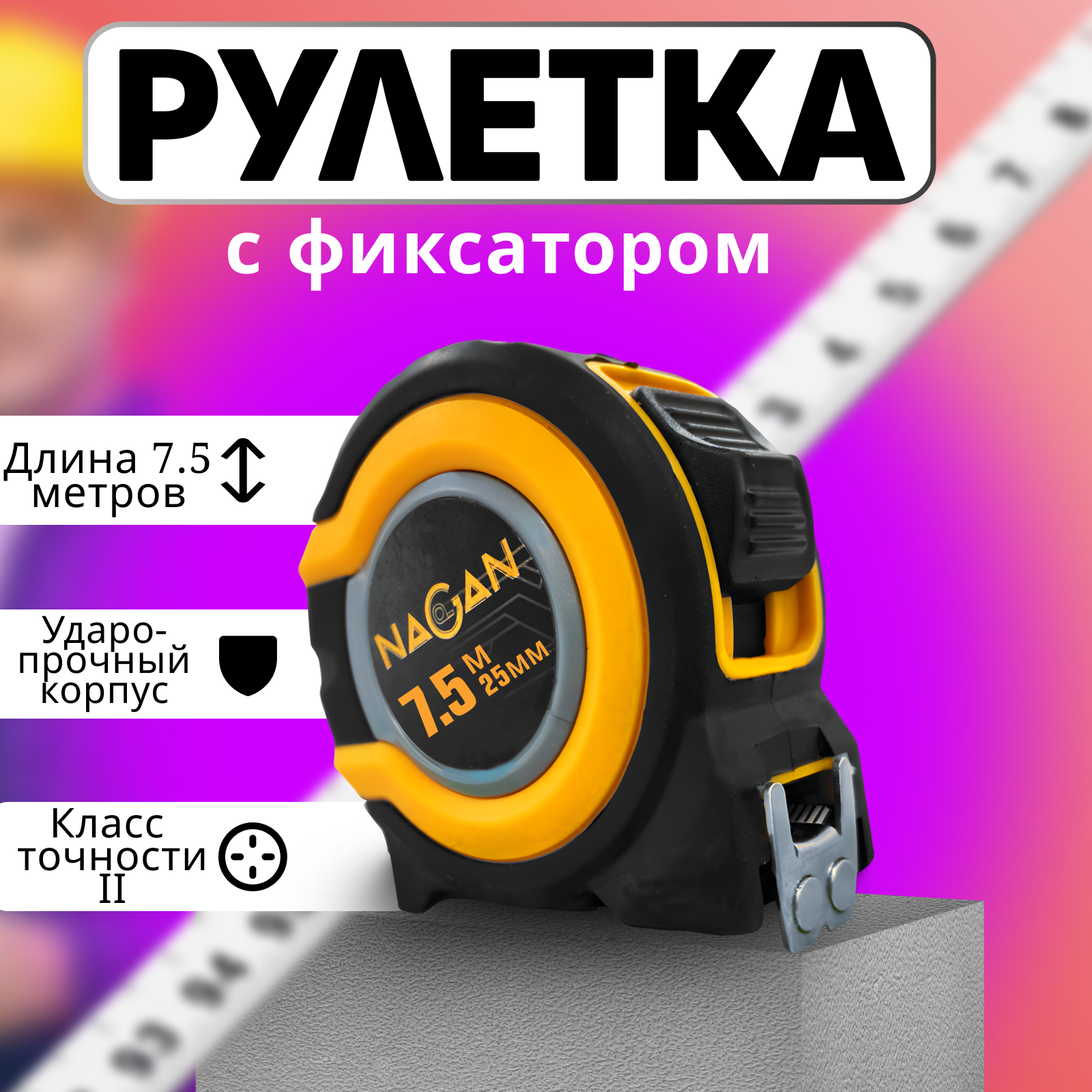 10 цен на Рулетка строительная с фиксатором 7,5 м * 25 мм в противоударном корпусе