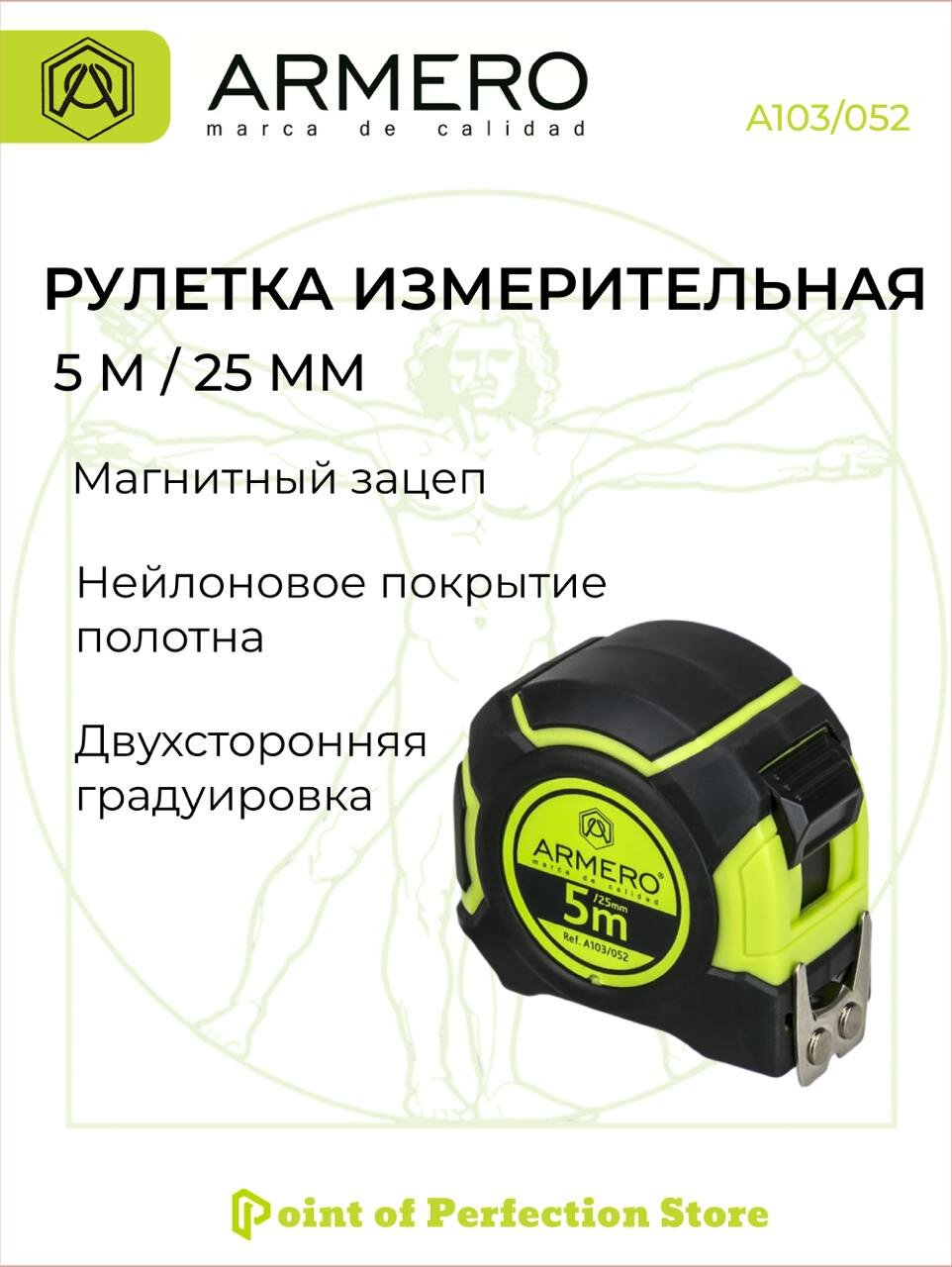 Рулетка с фиксатором 5м х 25мм ARMERO А103/052 информация: