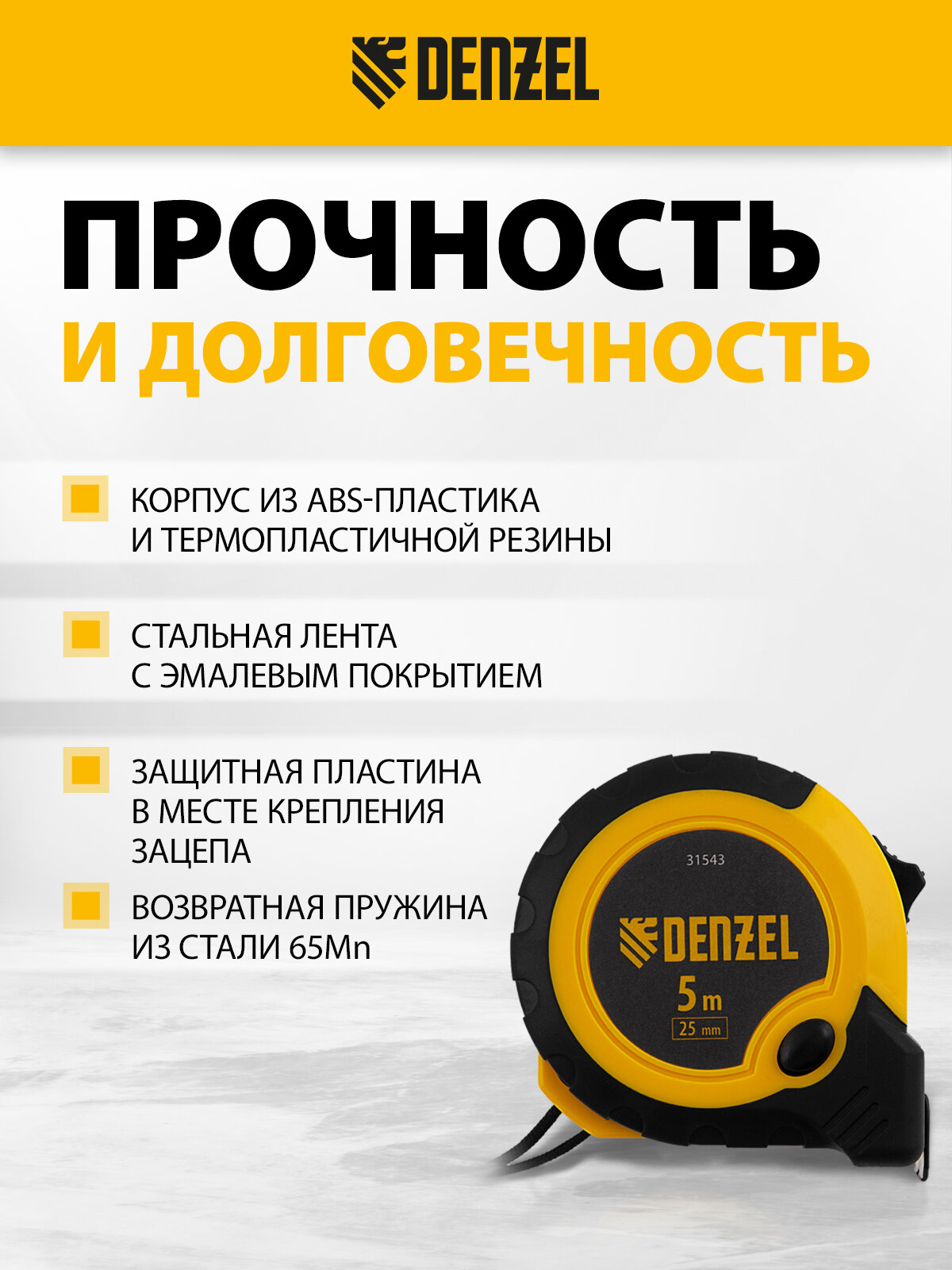 Рулетка Denzel 5м х 25ммдвухкомп. корпус, кнопка-пауза 31543 информация: