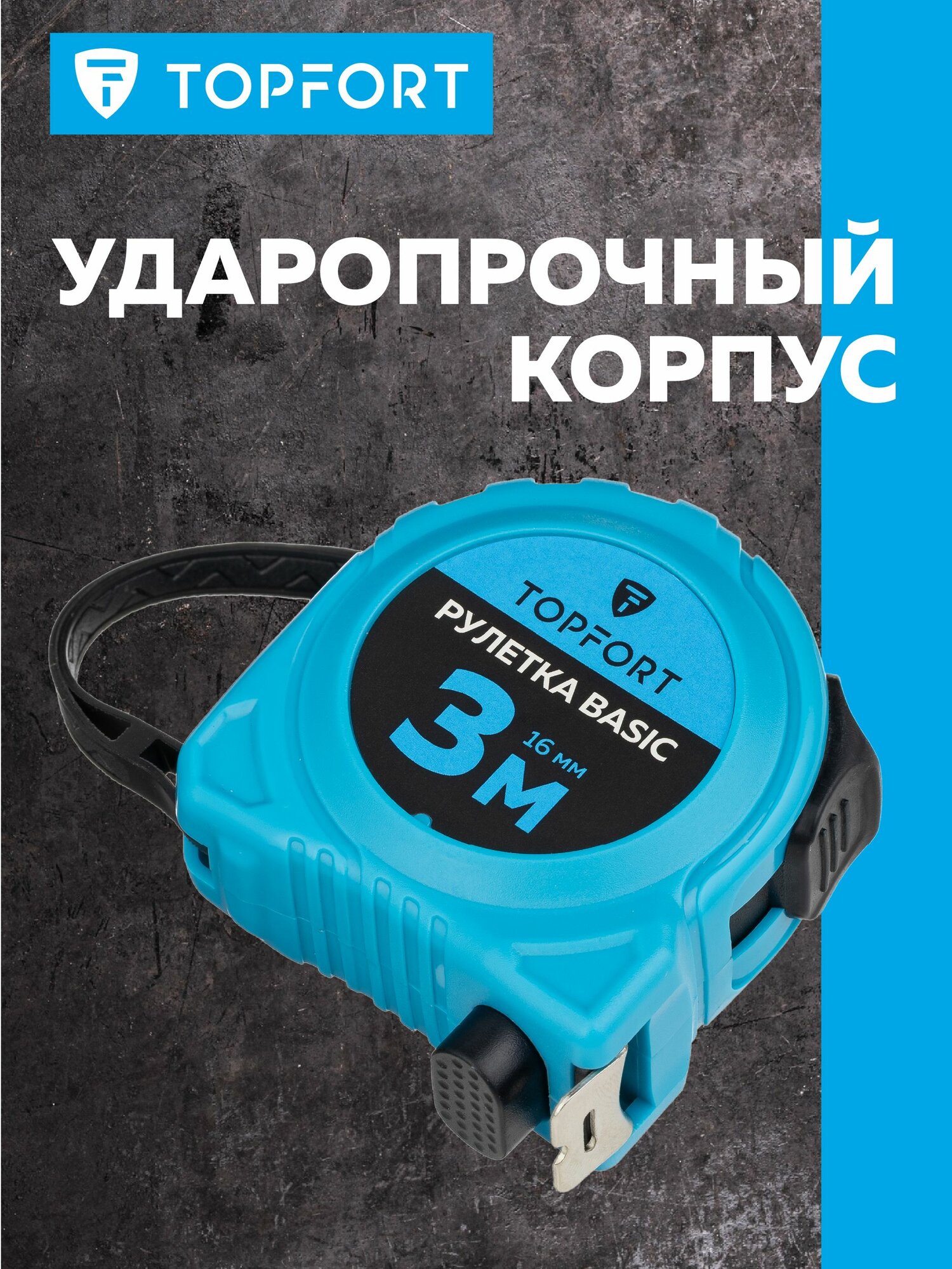 Рулетка строительная TOPFORT Basic измерительная, с автостопом, 3 м х 16 мм информация: