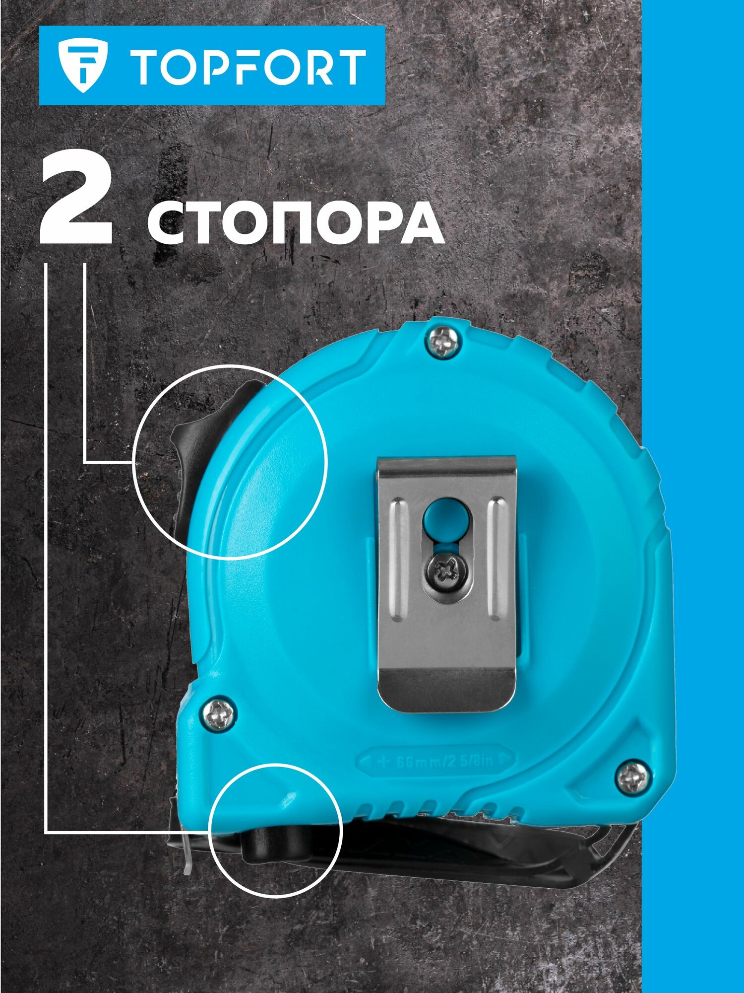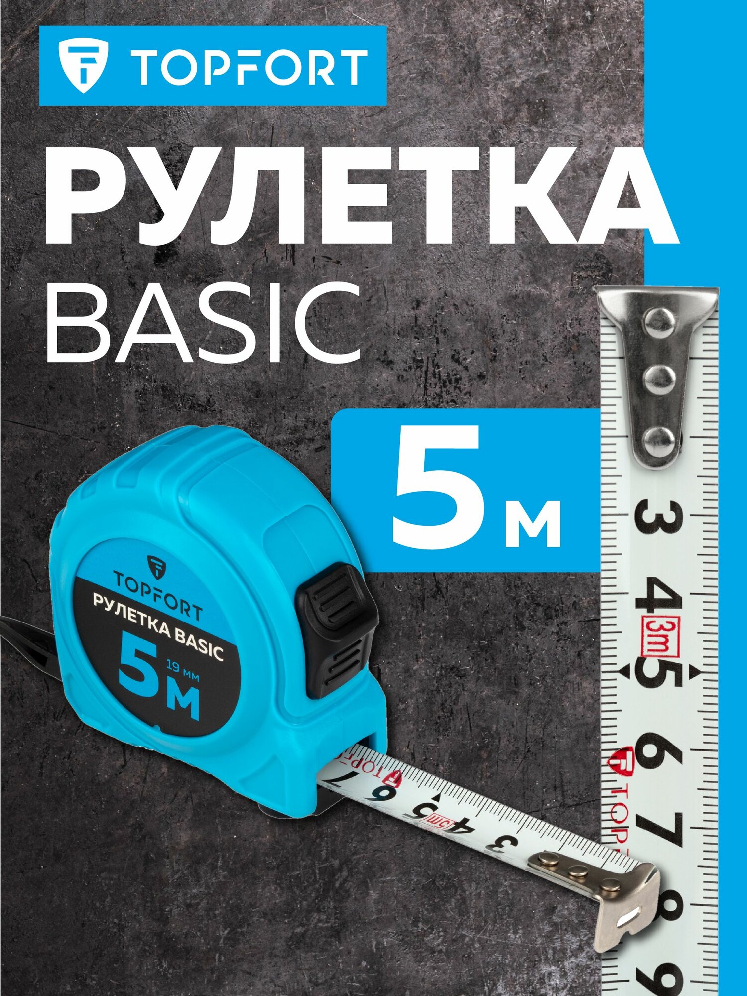 Рулетка строительная TOPFORT Basic измерительная, с автостопом, 5 м х 19 мм информация:
