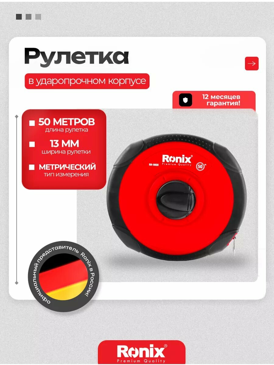 Рулетка измерительная Ronix 50 метров строительная (геодезическая) 3 к 1 информация: