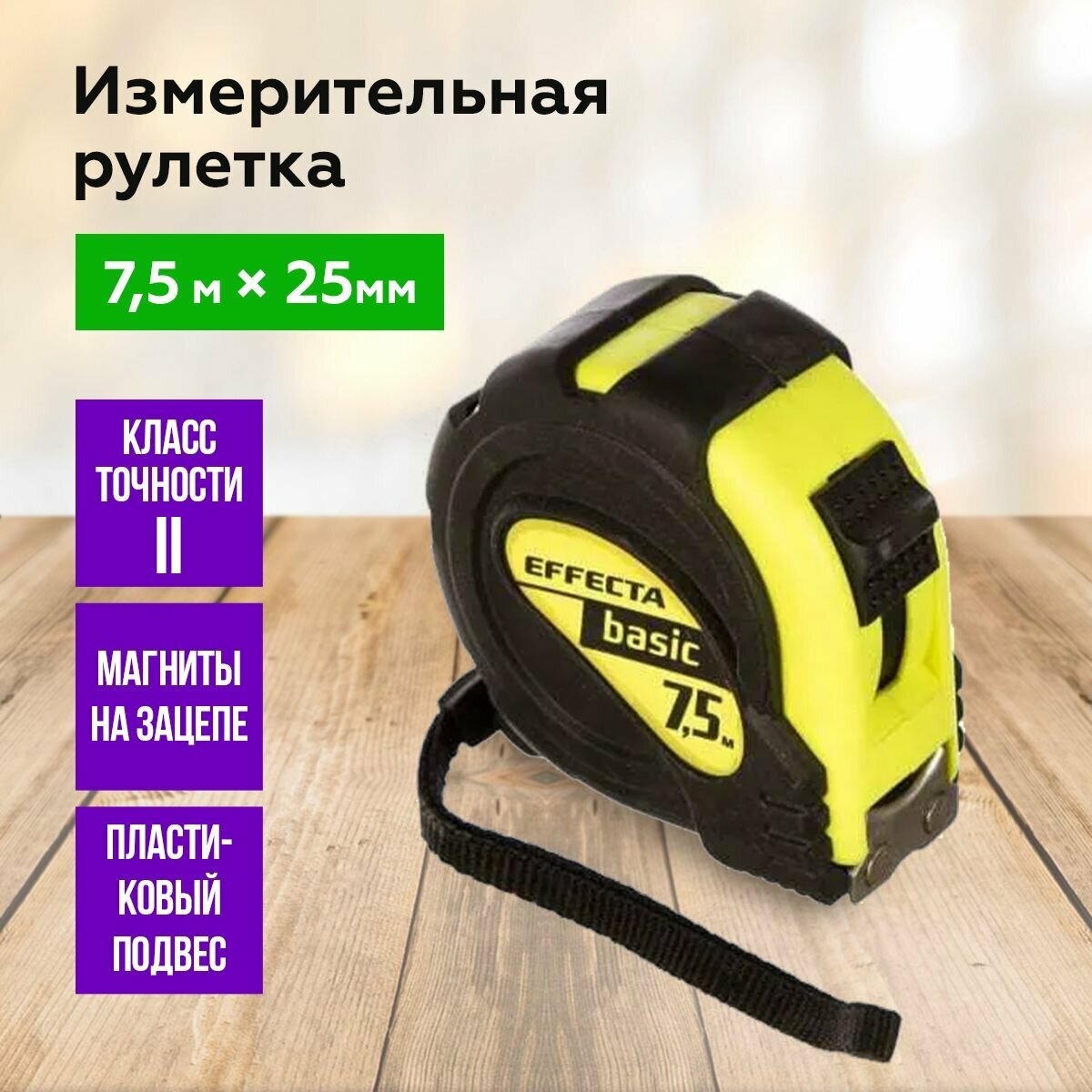 Характиристики этого товара не найдены!Отзывы на Рулетка измерительная с магнитом 7.5м / 25мм EFFECTA Basic, прорезиненный корпус