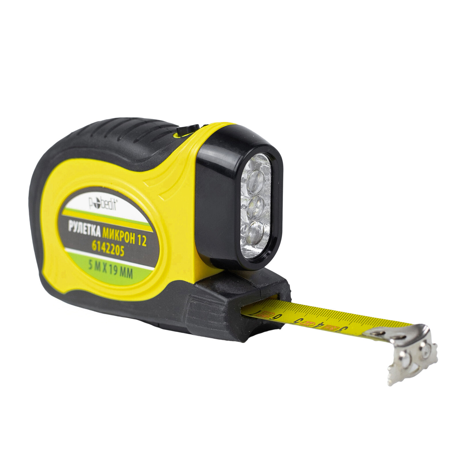 10 цен на Рулетка строительная 5м х 19мм с обрезиненным корпусом и фонариком Pobedit